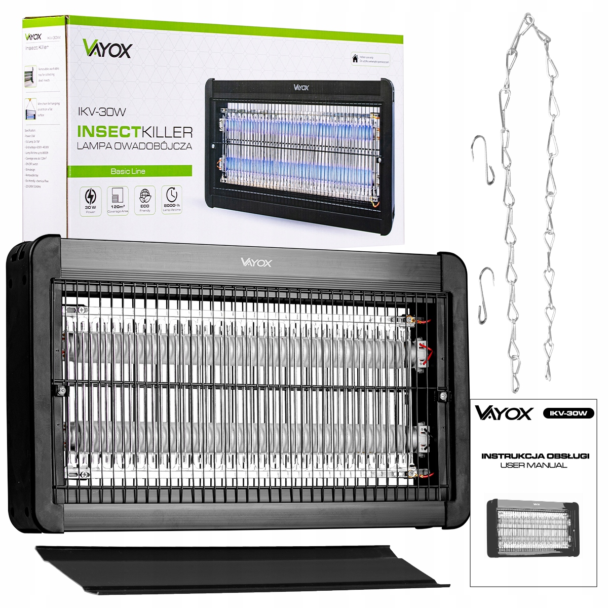 Инсектицидная лампа IKV-30W Vayox -отличное устройство для эффективного устранения насекомых, таких как комары, мухи, мотыльки, мотыльки и т. Д.