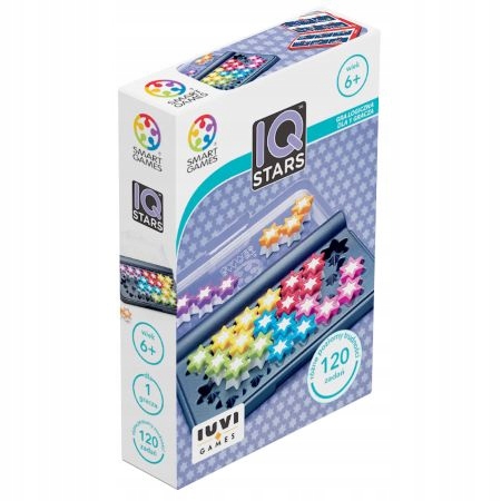 IQ Stars» — компактная игра-головоломка. Используя подсказки, игрок должен разместить на доске 7 элементов разной формы и цвета. Благодаря возрастающему уровню сложности каждое из 120 заданий поможет развить концентрацию и нестандартность. мышление.