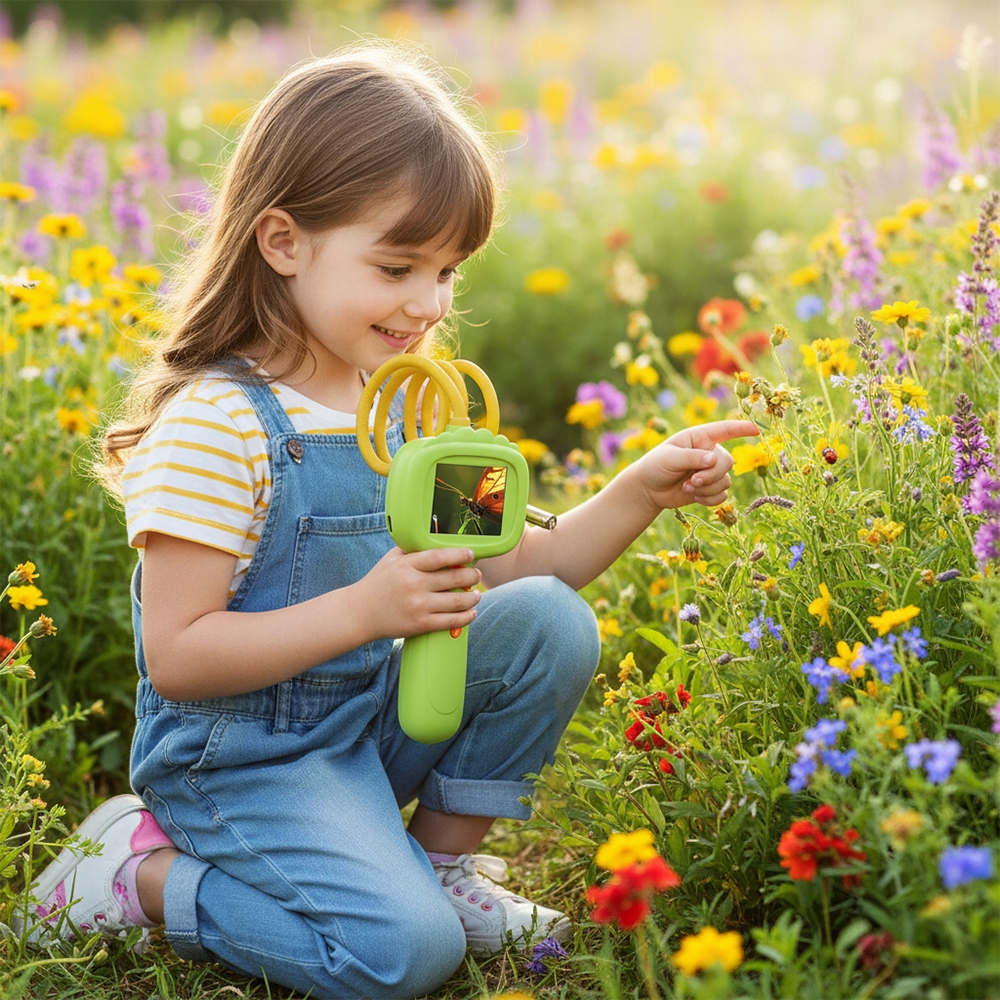 - 🔍2MP + макрообъектив, откройте для себя микроскопический мирОснащен HD-объективом 2MP и 8 регулируемыми светодиодами, освещает детали даже в темноте. Микролинза диаметром 7,9 мм легко проникает в щели и углы, позволяя детям видеть микроскопические структуры, невидимые невооруженным глазом, что возбуждает их любопытство.
