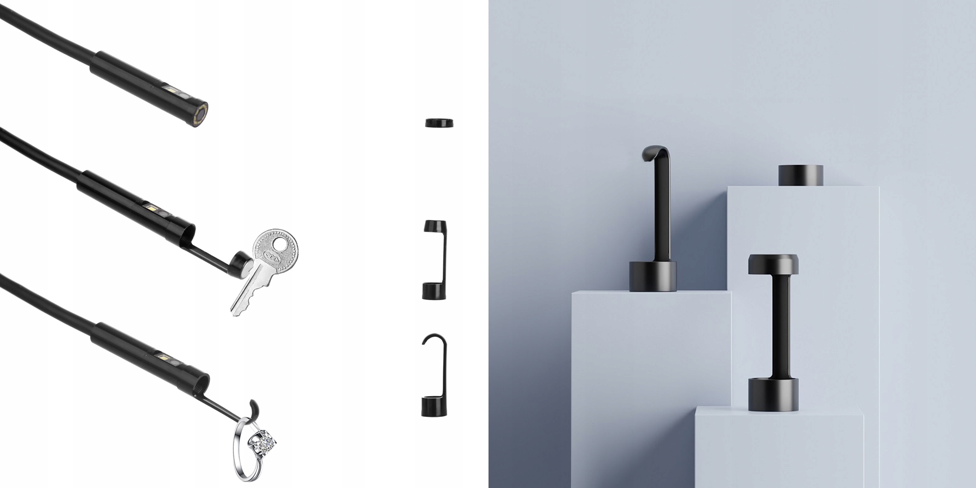 Дополнительные элементы расширят функциональные возможности камеры – для труднодоступных мест отлично подойдет сильный магнит или крючок.