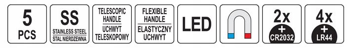 Инспекционный набор YT-06622 Ято зеркала Gripper Flashlight