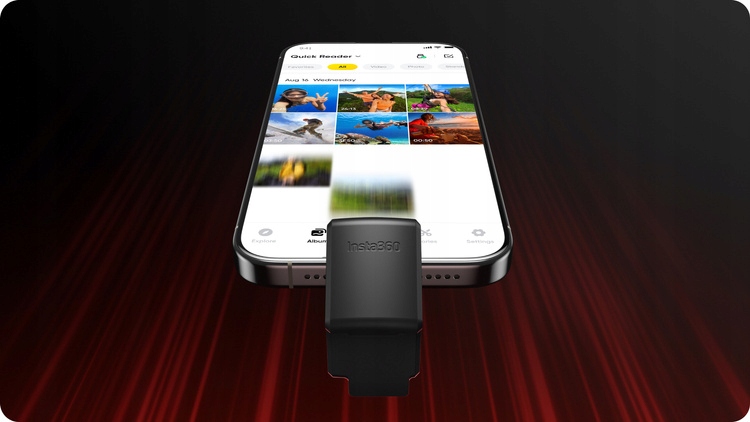Теперь вы можете в мгновение ока перенести все необходимые файлы с камеры Insta360 Ace Pro на свой смартфон. Специальный Quick Reader обеспечивает быструю и стабильную передачу данных без необходимости использования Wi-Fi или дополнительных устройств. Это сэкономит вам время! Более того, после подключения аксессуар может выступать в качестве внешнего носителя данных — не беспокойтесь о том, что для ваших видео не хватит места. Quick Reader также оснащен двумя разъемами — USB-C и Lightning, поэтому совместим как с устройствами Android, так и с iOS (продукт сертифицирован MFI).