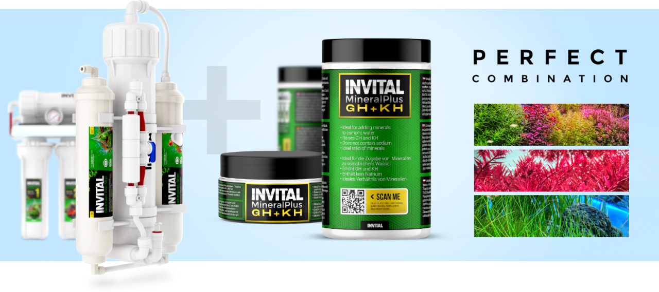 Как мы уже упоминали, Invital Mineralplus GH+KH в основном предназначен для владельцев инвертированного фильтра. Вода из инвертированного осмоса лишена каких -либо вредных, но также и положительных ингредиентов, поэтому перед использованием в аквариуме она должна быть обогащена. Для этой цели используются приготовления минералов плюс реминерализацию, которые не только обогащают воду минералами, но и стабилизируют уровень pH, который имеет тенденцию колебаться.