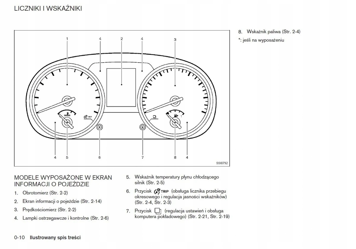 Руководство по эксплуатации Nissan содержит все версии оборудования и полезную информацию о том, как эффективно и безопасно использовать автомобиль, например: - индикаторы, контрольные лампы, открывание и закрывание - освещение и обзорность, сиденья, отсеки для хранения вещей, отопление, вентиляция, кондиционирование воздуха. - советы по вождению, эксплуатации, обслуживанию автомобиля - уровни жидкостей, проверка и доливка, аварийные операции, замена колес, предохранителей, замена лампочек - технические данные... и многое другое, дающее путешественникам ощущение безопасности и комфорта. Польское законодательство обязывает продавца приложить к автомобилю руководство по эксплуатации на польском языке. Руководство пользователя автомобиля новое, на польском языке.