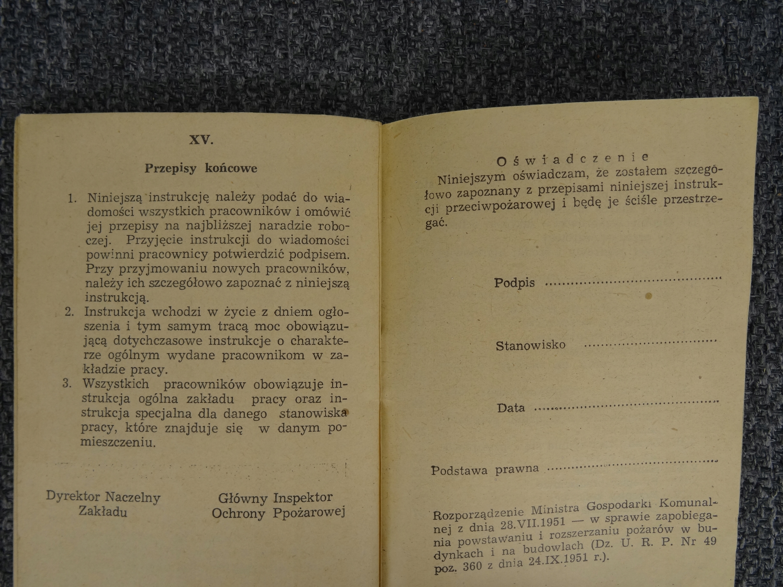 Инструкция по противопожарной защите на рабочем месте 1956