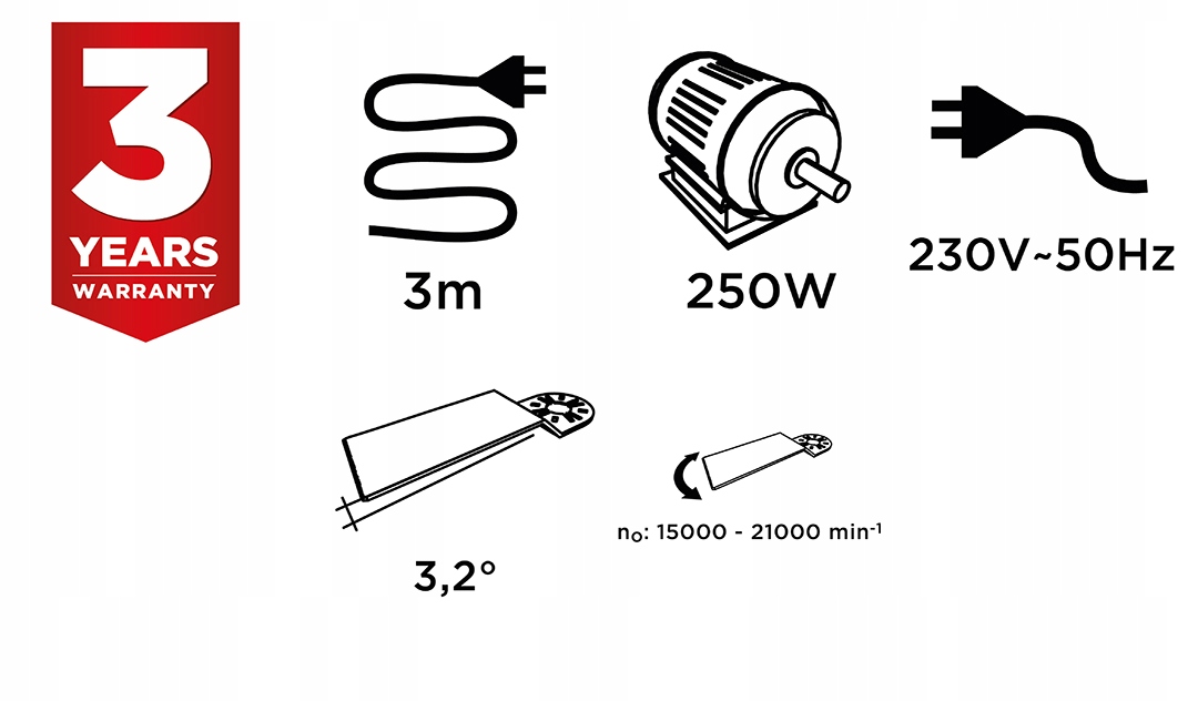 Многофункциональное устройство 250 Вт, количество колебаний 15000-21000 мин?1, чемодан 59G023 производства GRAPHITE характеризуется мощностью 250 Вт и количеством колебаний 15000-21000/мин, которое можно регулировать. Угол колебаний составляет 3,2°. Входящий в комплект адаптер позволяет извлекать стружку, а шесть рабочих насадок позволяют инструменту шлифовать, резать и скоблить металл, дерево и керамику. Устройство имеет шлифовальный башмак, пильный диск для керамики, скребок, полукруглый пильный диск для дерева и пластика, широкий погружной пильный диск и узкий погружной пильный диск. В комплект также входит наждачная бумага (5 штук), вставки, футляр и компенсатор натяжения с алюминиевой ключницей М5. Устройство позволяет работать одной рукой, а его небольшой вес и удобный размер (300 х 70 мм) делают выполнение действий более комфортным.