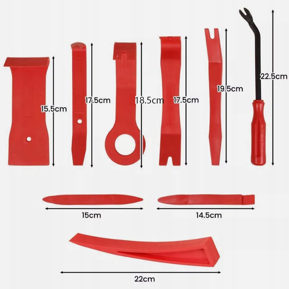 Эргономичная ручка имеет противоскользящую функцию, легко держать, отдельная противоскользящая накидная гайка. А благодаря мягкой резине, вам не придется беспокоиться о повреждении краски вашего автомобиля. Может использоваться для разблокировки автомобиля в экстренной ситуации, модификации автомобильного радио, изменения управления навигационным центром, снятия внутренней дверной панели и т. д.