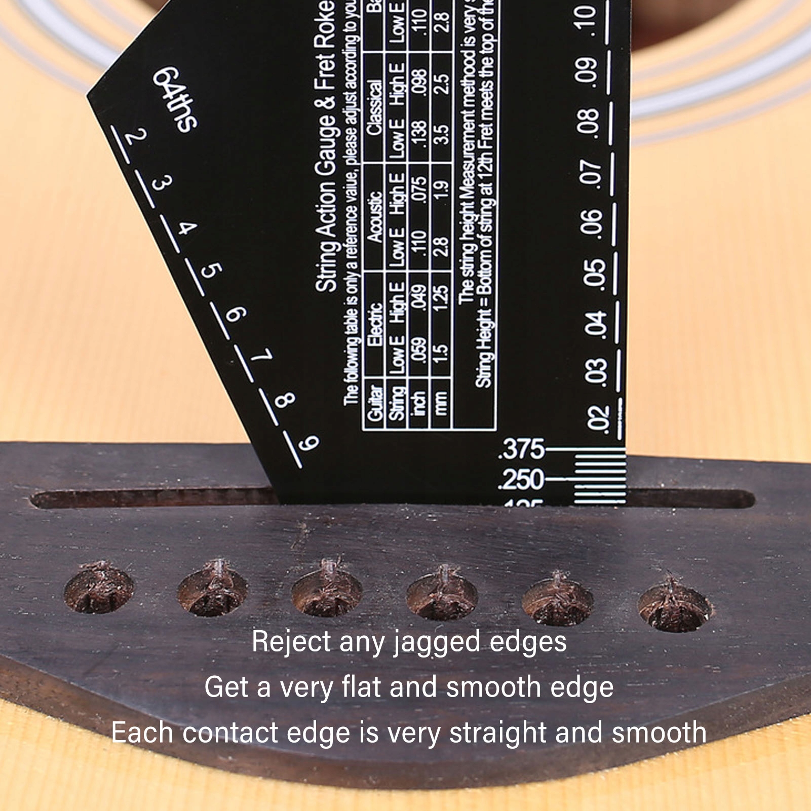 Особенность:1. Твердый материал: инструмент-линейка для гитары Actionmeter изготовлен из нержавеющей стали высокой твердости и выдерживает любые неприятные движения и падения