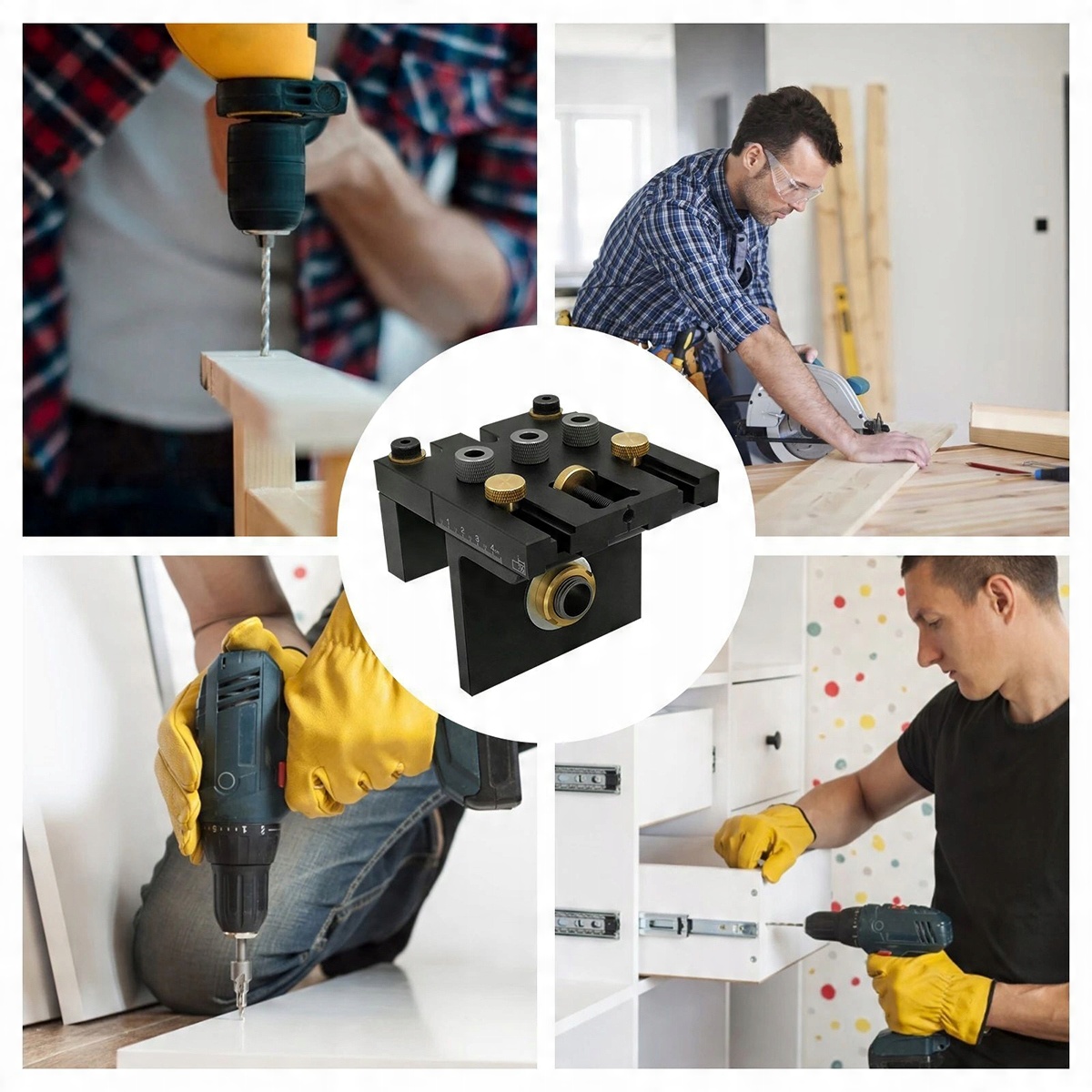 【Многофункциональность】 Многофункциональная направляющая для сверления отверстий под дюбеля и вертикальных отверстий. Полный комбинированный набор отвечает различным требованиям сверления в различных обстоятельствах.