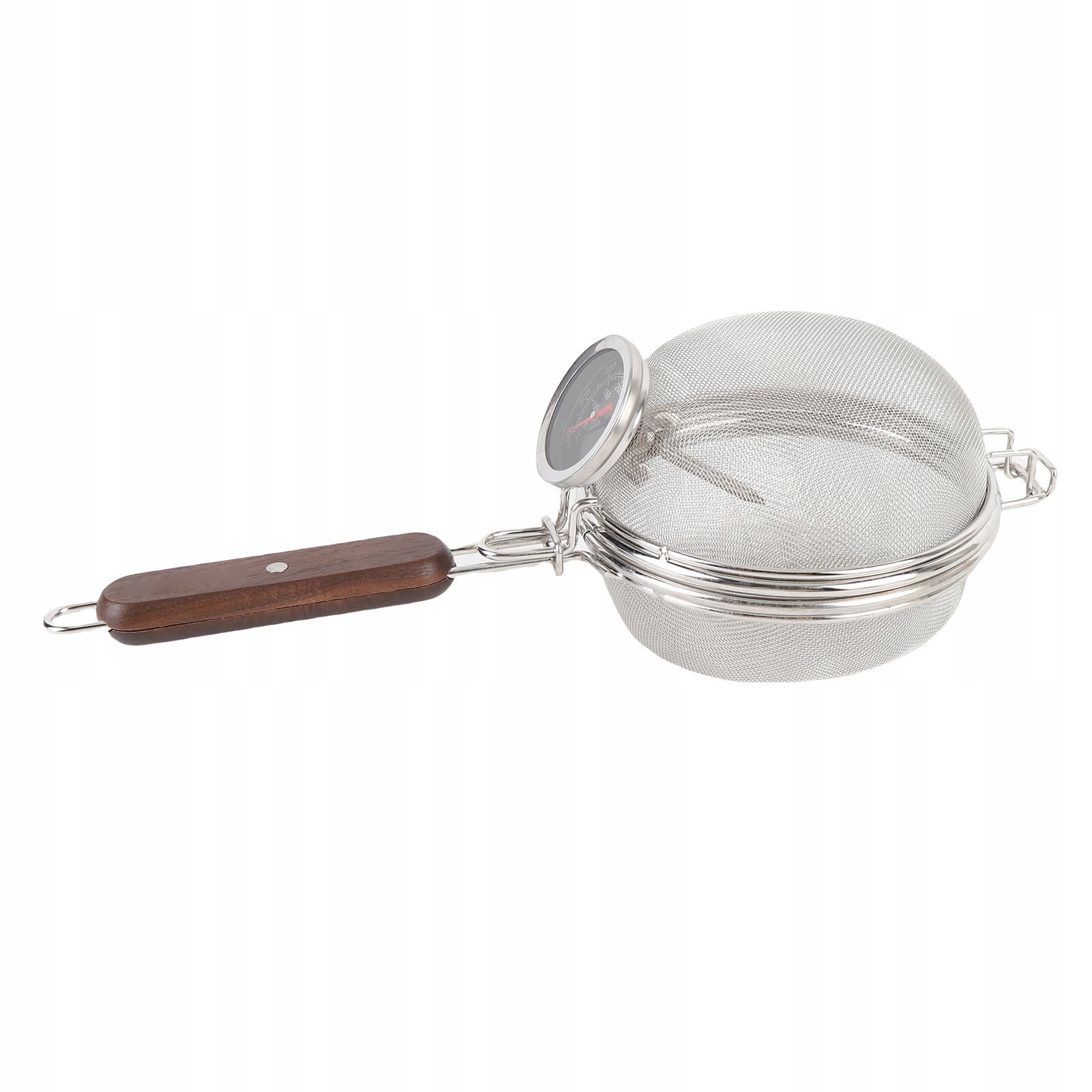 2. Твердый материал: проволочная сетка из нержавеющей стали, прочная и долговечная. Длинная деревянная ручка с термоблокирующей сеткой для выпечки. Легко чистить, после использования просто промойте его теплой мыльной водой и высушите на воздухе. Его также можно мыть в посудомоечной машине.