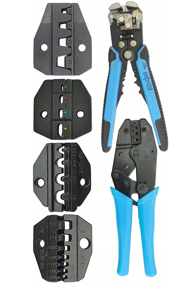 КЛЕЩИ СО СМЕННЫМИ 5 МАТРИЦАМИ ДЛЯ ОБЖИМА РАЗЪЕМОВ + МНОГОФУНКЦИОНАЛЬНЫЙ СНЯТНИК ИЗОЛЯЦИИ