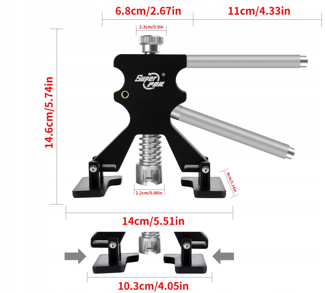 Черный пустынь можно отремонтировать. Легко в использовании и подходит для каждого человека, имеющего вдали вмятин и ущерб, причиненные градом. Винт может быть отрегулирован так, чтобы он соответствовал всем размерам самостоятельных подушек. Размещенные резиновые ножки предназначены для защиты области вокруг вмятин от удаления краски