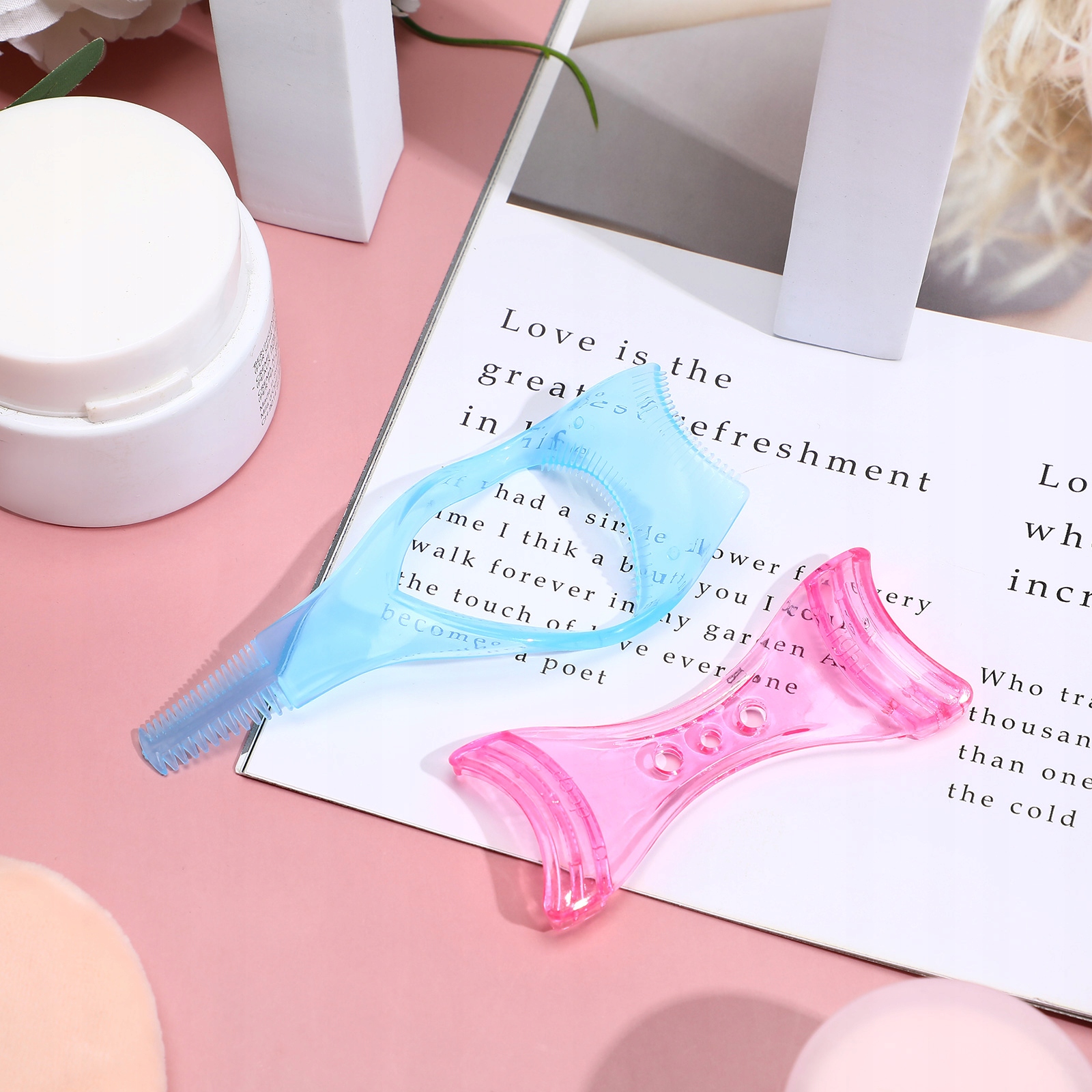 ✅Этот продукт представляет собой набор инструментов для макияжа, в который входит модель трафарета для подводки глаз и аппликатор-расческа для ресниц. Все они изготовлены из высококачественного пластика, многоразового использования и не повреждают кожу. Идеально подходит для профессиональных визажистов или начинающих визажистов. Легко прорисуйте ресницы и брови, чтобы макияж получился естественным и красивым.