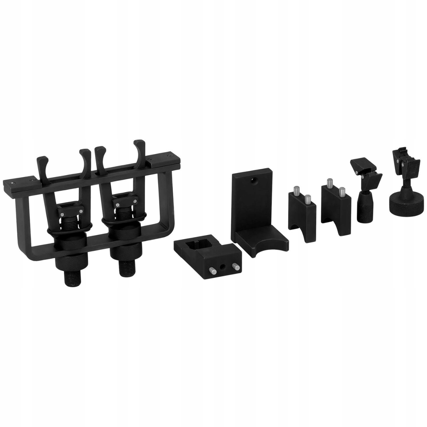 Фиксатор ГРМ расположен в пластиковом корпусе с отформованными выемками под каждый элемент. Поскольку кейс компактный, он легко поместится в любой мастерской. Практичная ручка облегчает транспортировку набора.