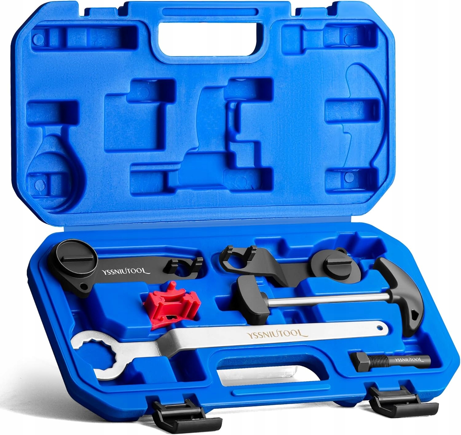 В комплект входят, среди прочего: фиксатор коленчатого вала, распределительный механизм, натяжной ролик и штифт вала.