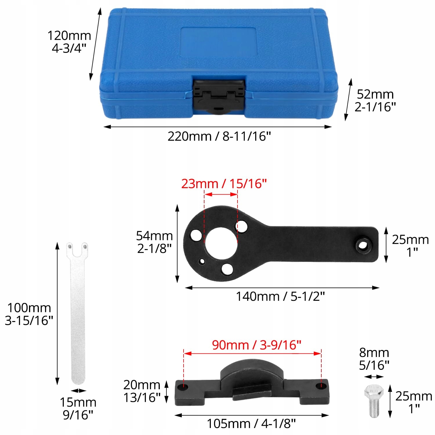 Набор инструментов для ремня ГРМ, инструмент для регулировки распредвала/коленвала, замок для двигателей Fiat 500 / Punto Evo / Panda / 1,1, 1,2 и 1,4 л 8V. Этот профессиональный инструмент используется для фиксации распределительного и коленчатого вала при замене ремня ГРМ в бензиновых двигателях Fiat и Chrysler 1.1 Eco, 1,2 и 1,4 л 8V. Помогает установить распредвал и коленчатый вал в правильное положение.
