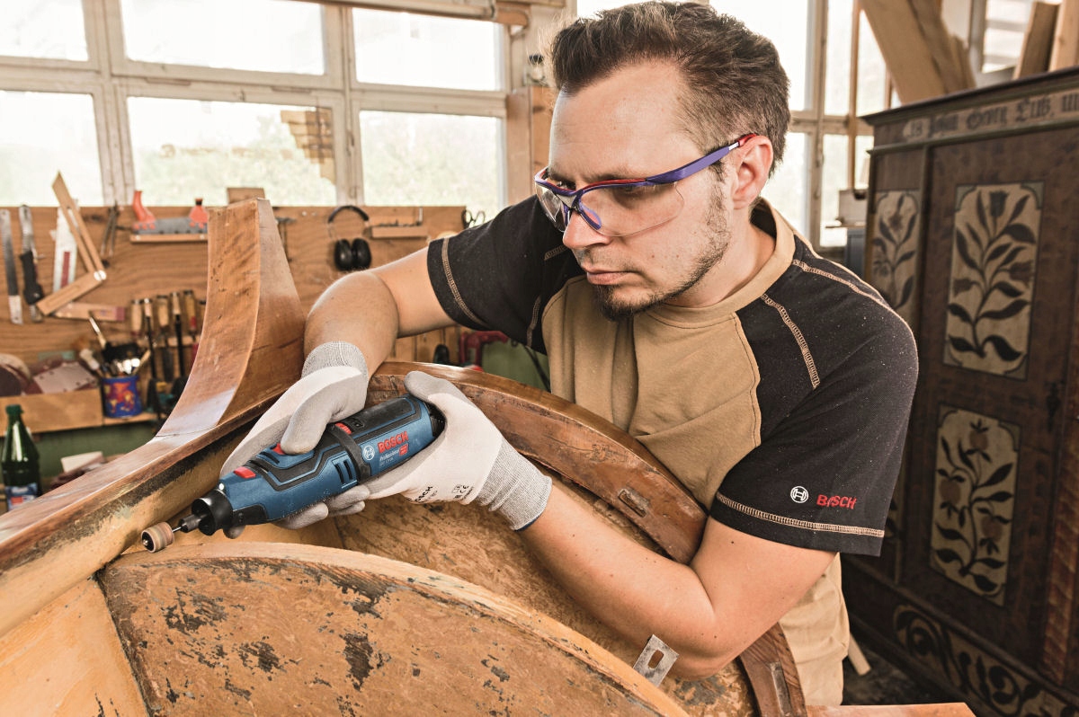 Тонкая и эргономичная ручка, покрытая нескользящим мягким материалом Softgripгарантирует высокую безопасность работы и высокий комфорт использования, обеспечивает оптимальный угол между инструментом и заготовкой, гарантируя при этом высокую точность во время работы
