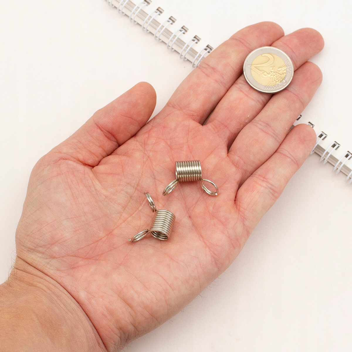 ⭐️Простота в использовании: во-первых, вставьте веревку в концы спирали, во-вторых, используйте плоскогубцы, чтобы захватить последнюю спираль, затем медленно скручивайте и сжимайте ее на веревке, пока она плотно не зажмет концы веревки. . Наконец, прикрепите застежку к петле.