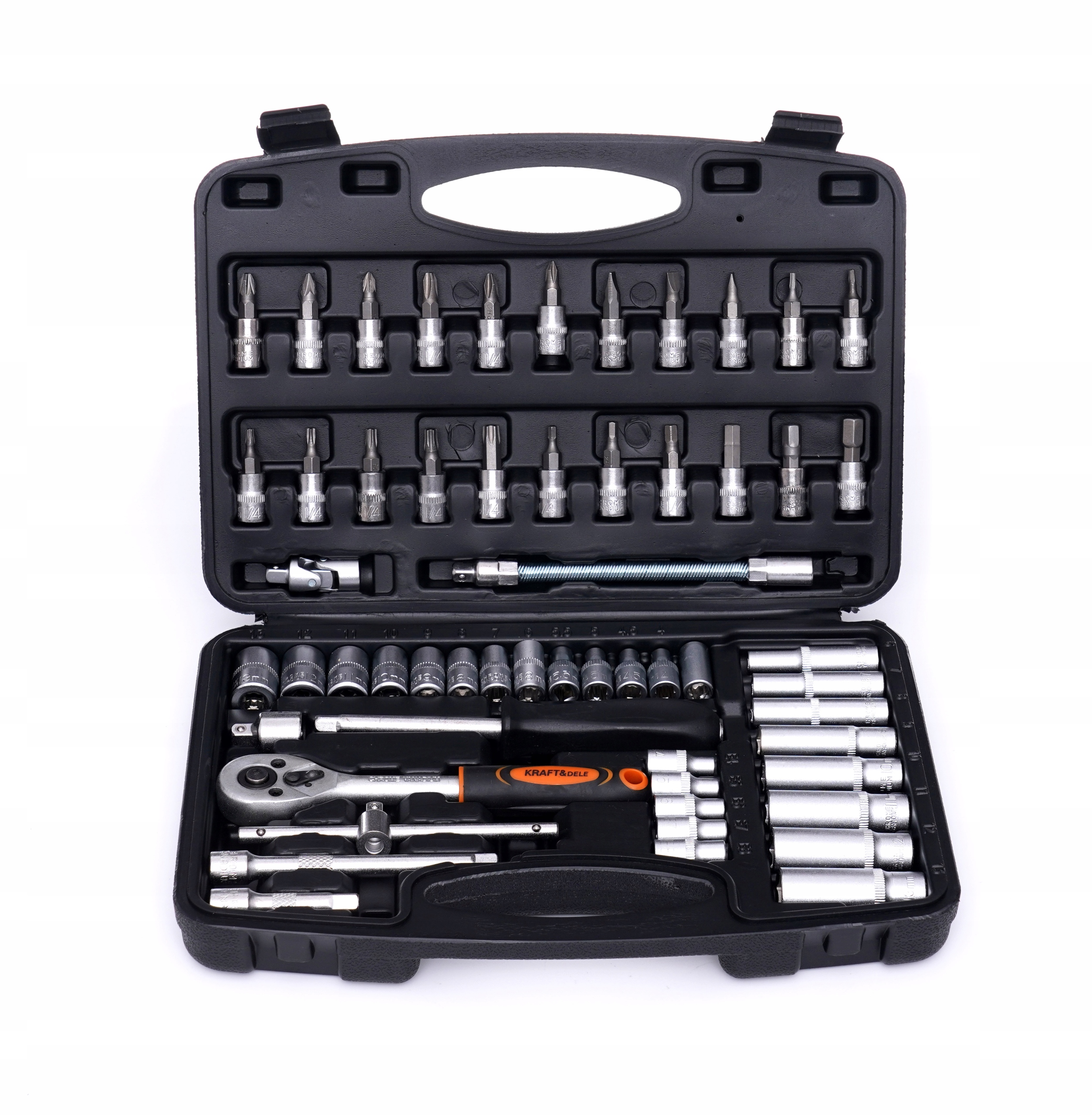 НАБОР КЛЮЧЕВЫХ ИНСТРУМЕНТОВ, 56 ЭЛЕМЕНТОВ, БИТЫ, ГОЛОВКИ, УДЛИНИТЕЛИ, ТРЕЩОТКА