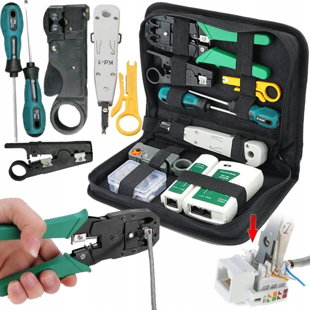 Удобный набор, который можно проверить старым или создать новые компьютерные сети LAN. Набор оснащен всеми необходимыми инструментами, необходимыми для работы в интернет -сети дома и в офисе