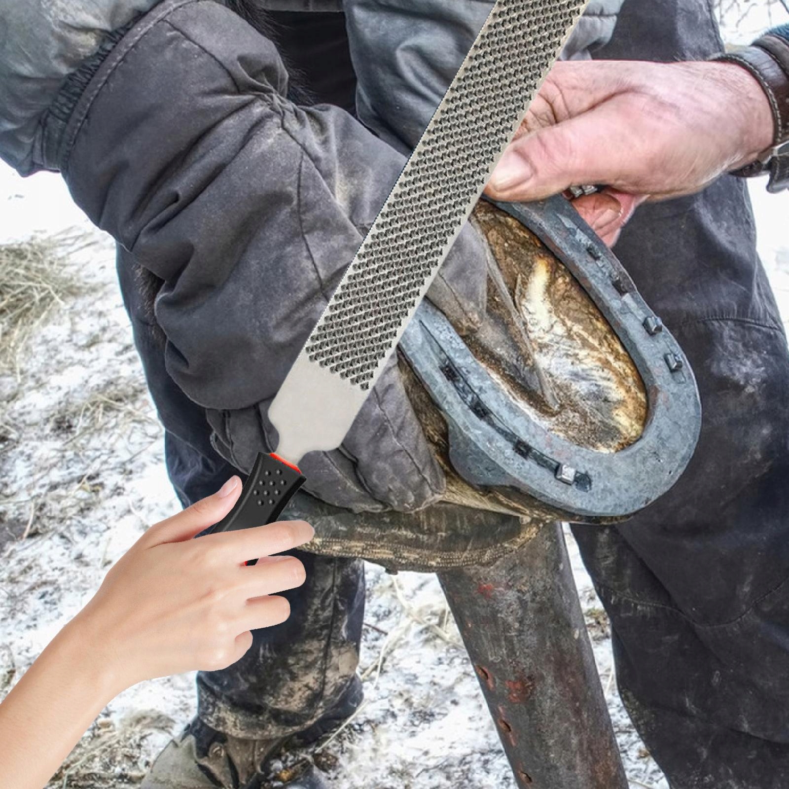 [двусторонняя производительность]: этот 14-дюймовый скрип для копыт имеет двустороннюю структуру с небольшим и толстым, что обеспечивает точное обрезку и всестороннее использование. Обеспечивает эффективные, точные результаты, и грубая сторона с точки зрения, отлично подходит для различных приложений
