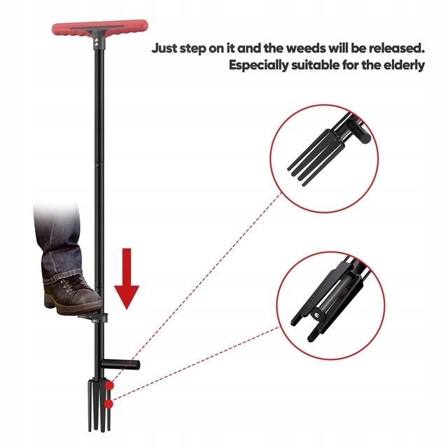 - Защити свою спину! вам не нужно слишком сильно сгибаться при использовании этого 100-сантиметрового сорняка, который защищает колени и обратно. Он идеально подходит для людей с хронической болью в спине или пожилых садовников.