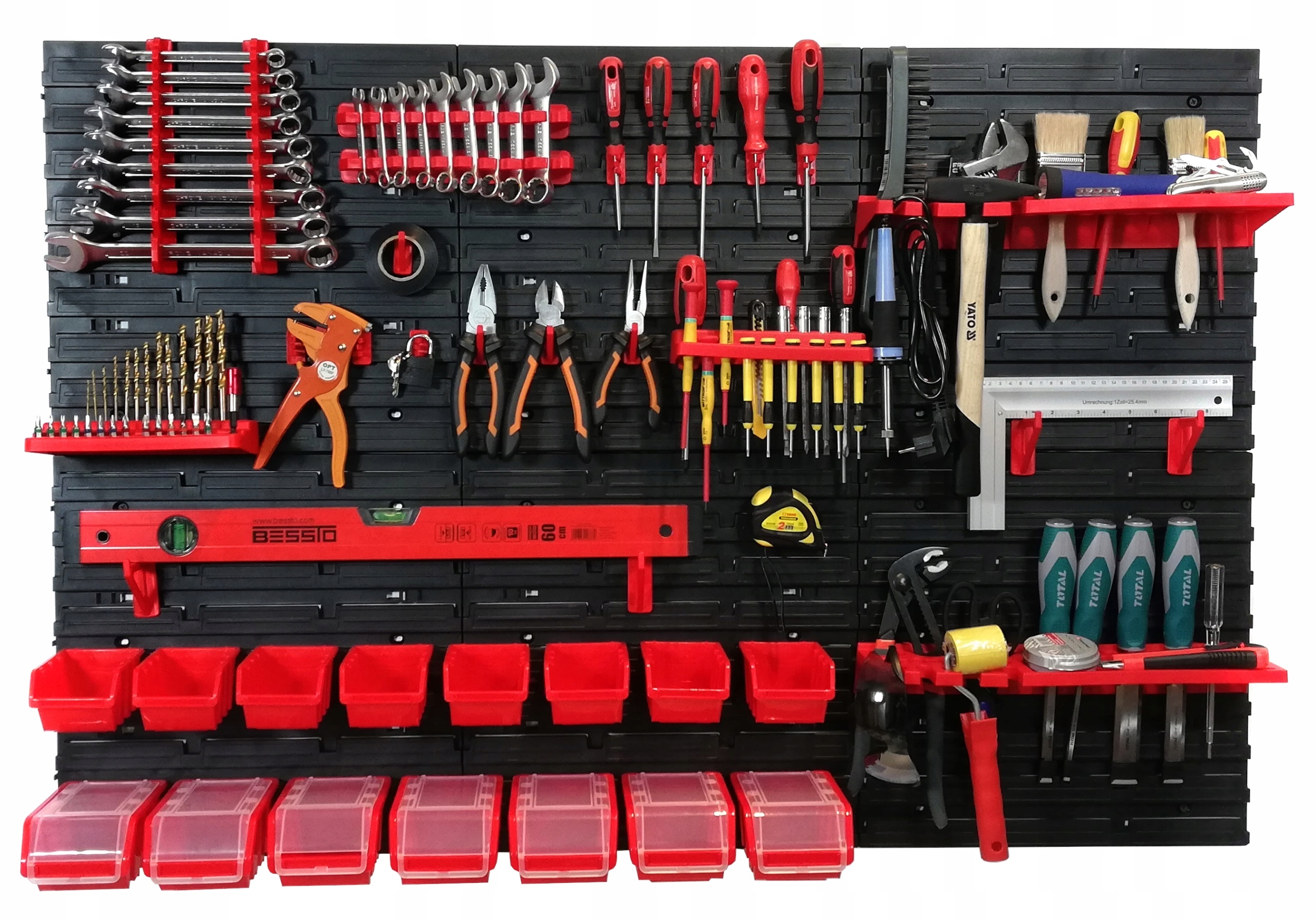 Несмотря на то, что доски, держатели и контейнеры пластиковые, отлично подойдут как в профессиональной мастерской, так и в домашнем гараже.