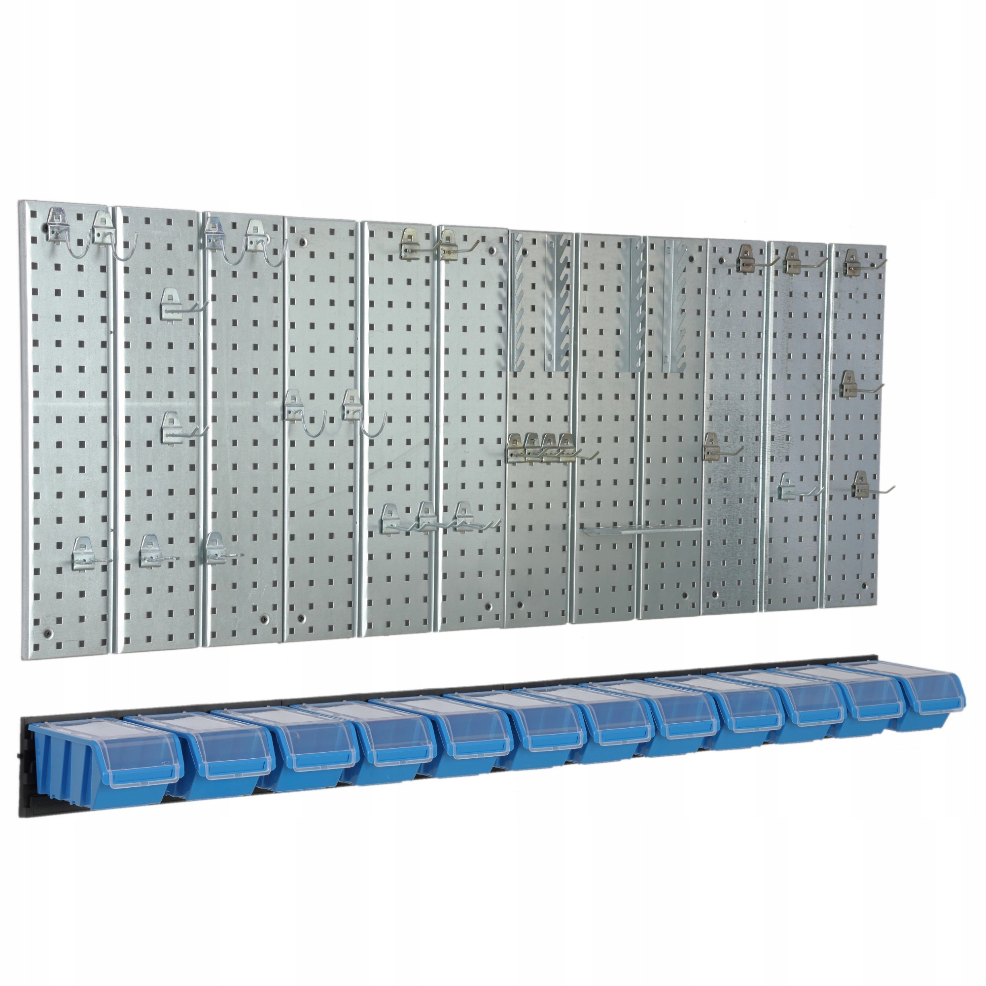 Представленный набор представляет собой комплектную металлическую перфорированную доску для инструментов со всеми ручками и лотками, которые видны на фотографиях. (Без самих инструментов.)