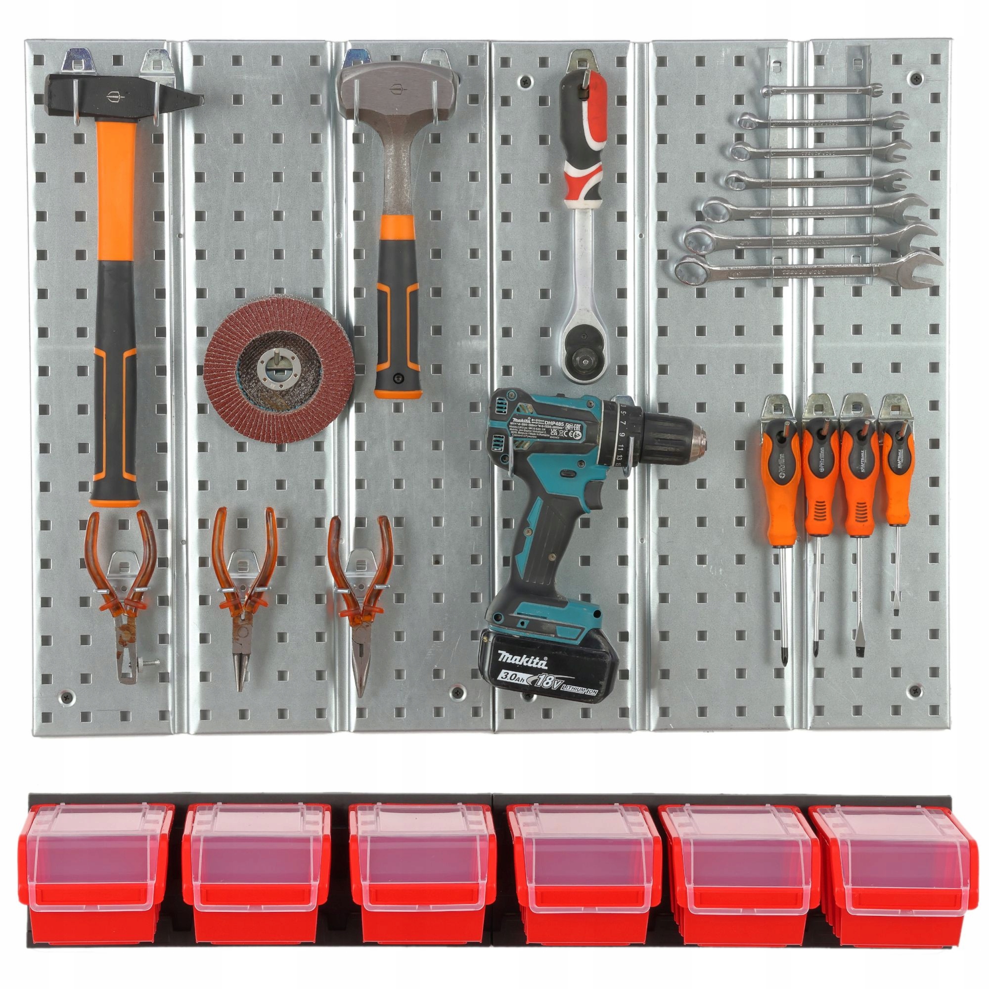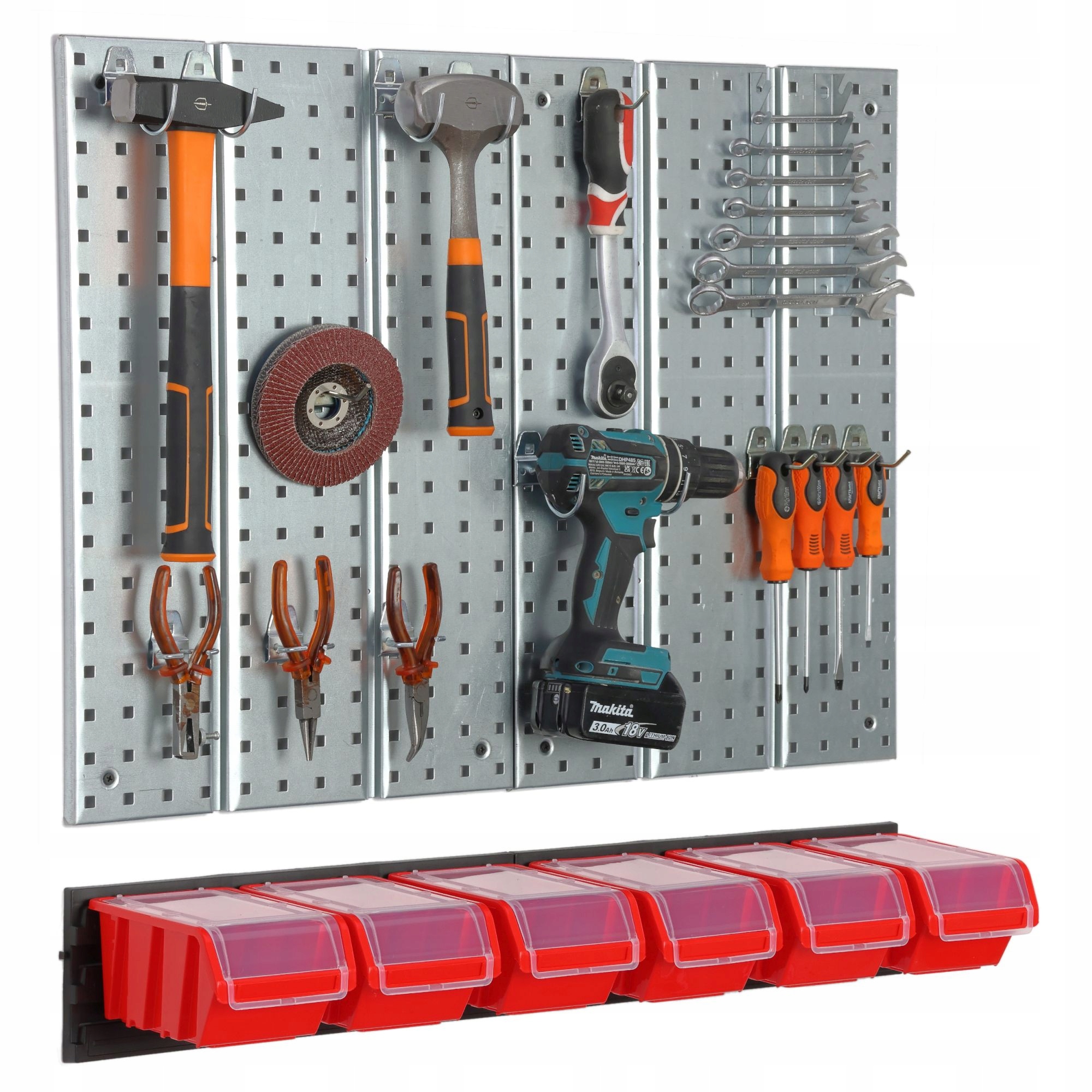 Представленный набор представляет собой комплектную металлическую перфорированную доску для инструментов со всеми ручками и лотками, которые видны на фотографиях. (Без самих инструментов.)