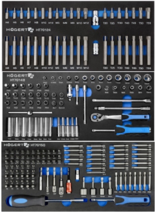 - ⏩ HT7G127 Набор инструментов с трещоткой 3/8", 22 шт., вставка EVA