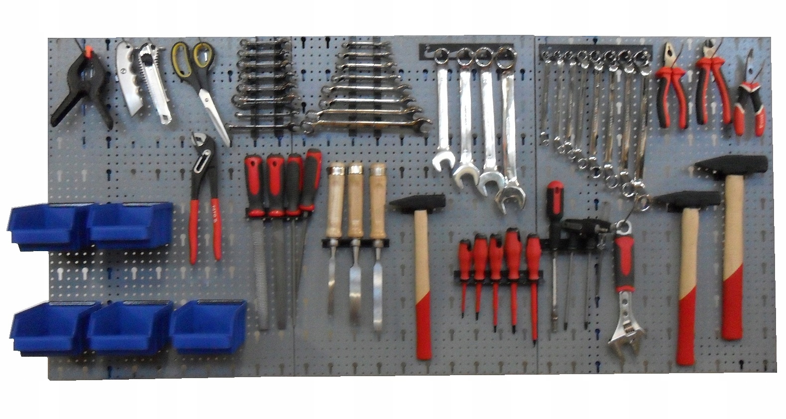 • 23 подвески, в том числе: 14 деталей из листового металла для рожковых ключей, молотков, напильников, долот, отверток, малых и больших накидных ключей, сверл, 9 частей проволоки: 3 длинных (110 мм, фи 4 мм), 3 средних (90 мм, диаметр 3 мм), 3 коротких (70 мм, диаметр 3 мм)