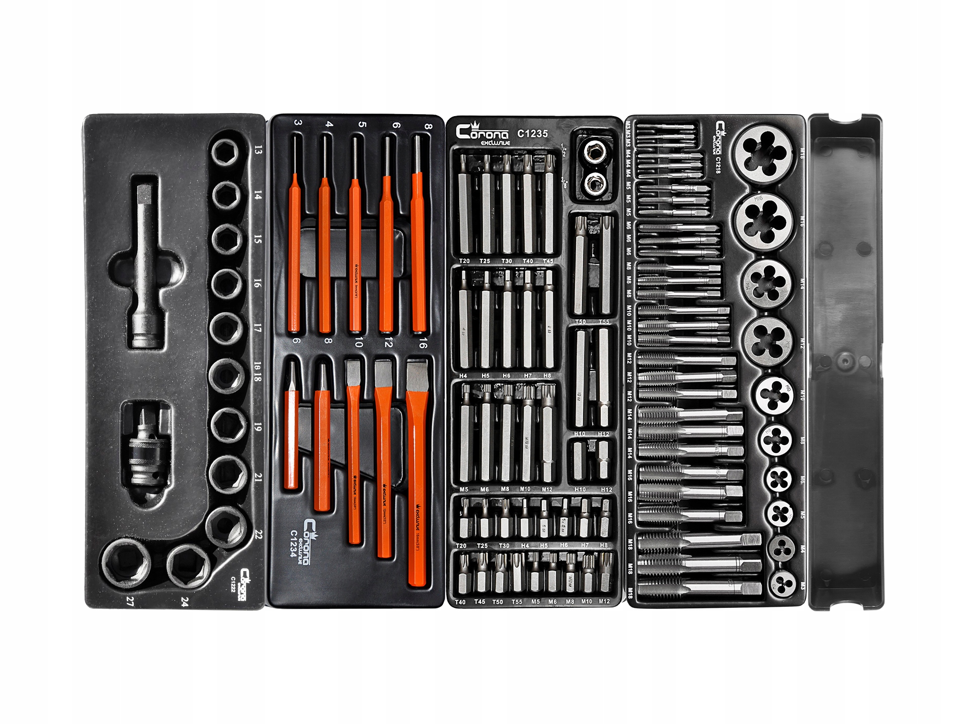 Первые 5 ящиков оснащены вставками для инструментов, а остальные 2 оставляются пустыми для собственного оборудования.