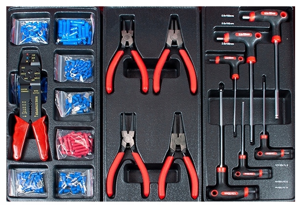 - клещи для обжима изолированных кабельных наконечников с набором клемм