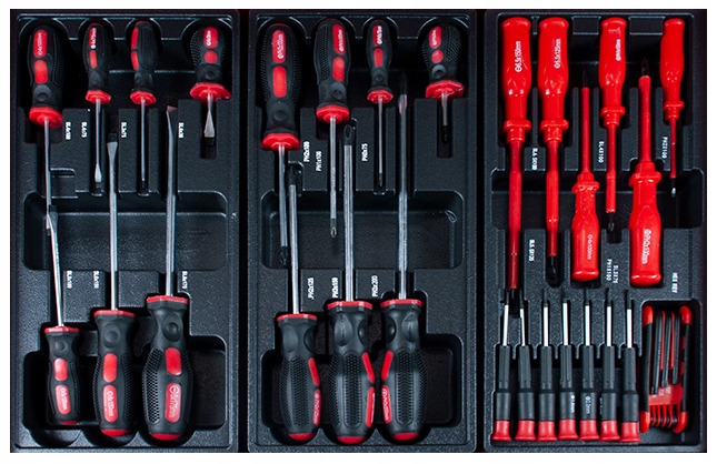 - 4 отвертки с плоской головкой: SL3x75/SL4x100/SL5 .5x125/SL6.5x150