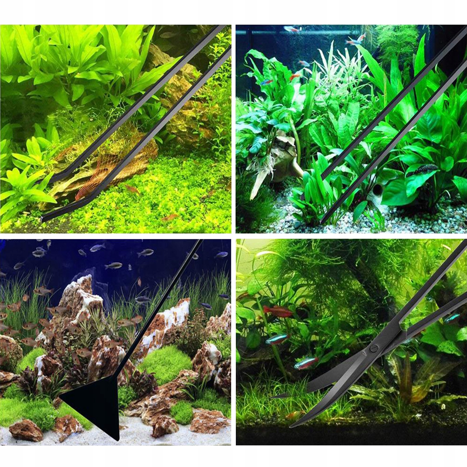 Пинцет позволяет сажать и удерживать растения, менять конструкцию аквариума, кормить животных живым кормом, ловить насекомых или обрабатывать кораллы. Пинцеты в наборе оснащены зубцами, благодаря которым они могут захватывать даже скользкие предметы.