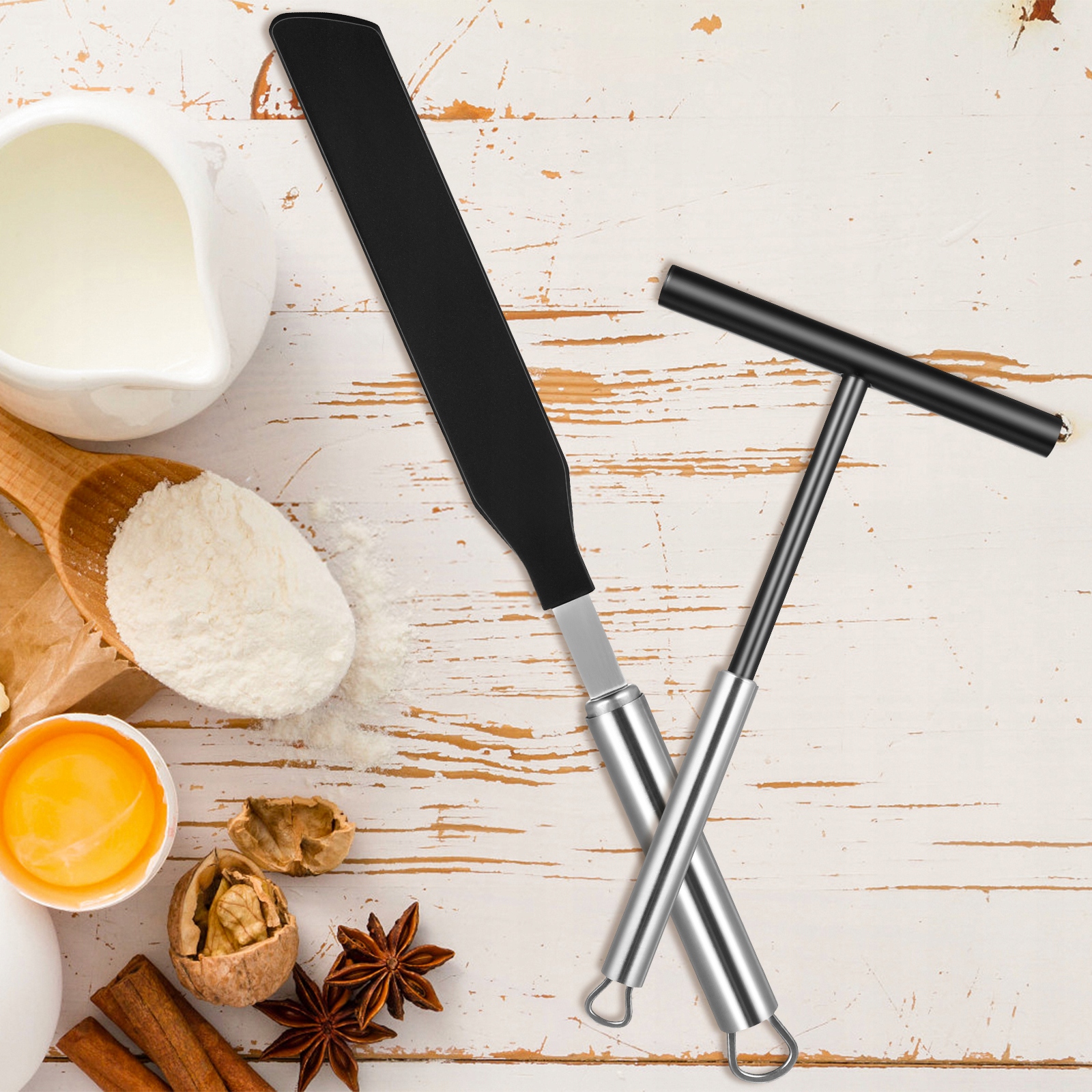 Это набор скребка для крема и лопаточки для блинов, изготовленный из высококачественного качественные материалы, долговечны и могут служить долго. Конструкция ручки эргономична, удобна и удобна в использовании. Хорошо продуманная и удобная ручка обеспечивает простоту использования.
