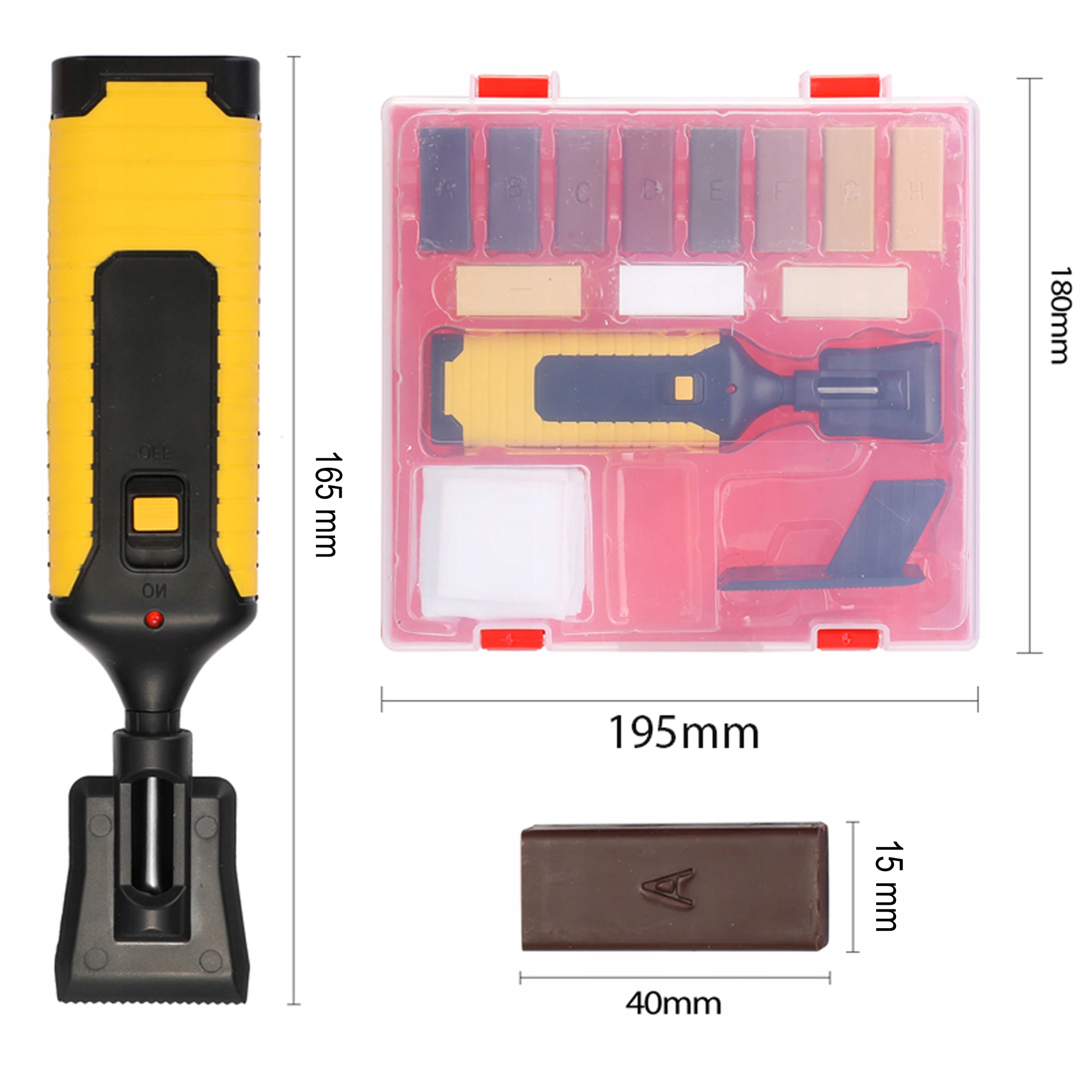 ✔ Полный набор - содержит все, что вам нужно для ремонта: воски, шпатель, устройство плавления воска, полировка, чистящие средства и многие другие инструменты.