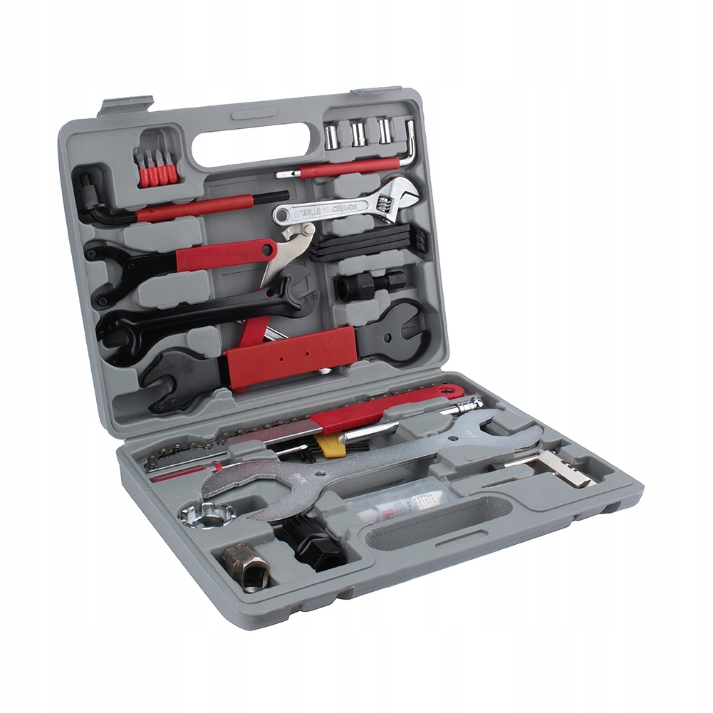 ІНСТРУМЕНТИ КЛЮЧІ ОТ ВЕЛОСИПЕДА 44 ШТ. Гнізда для валіз, шестигранні ключі, ложки, латки, клей