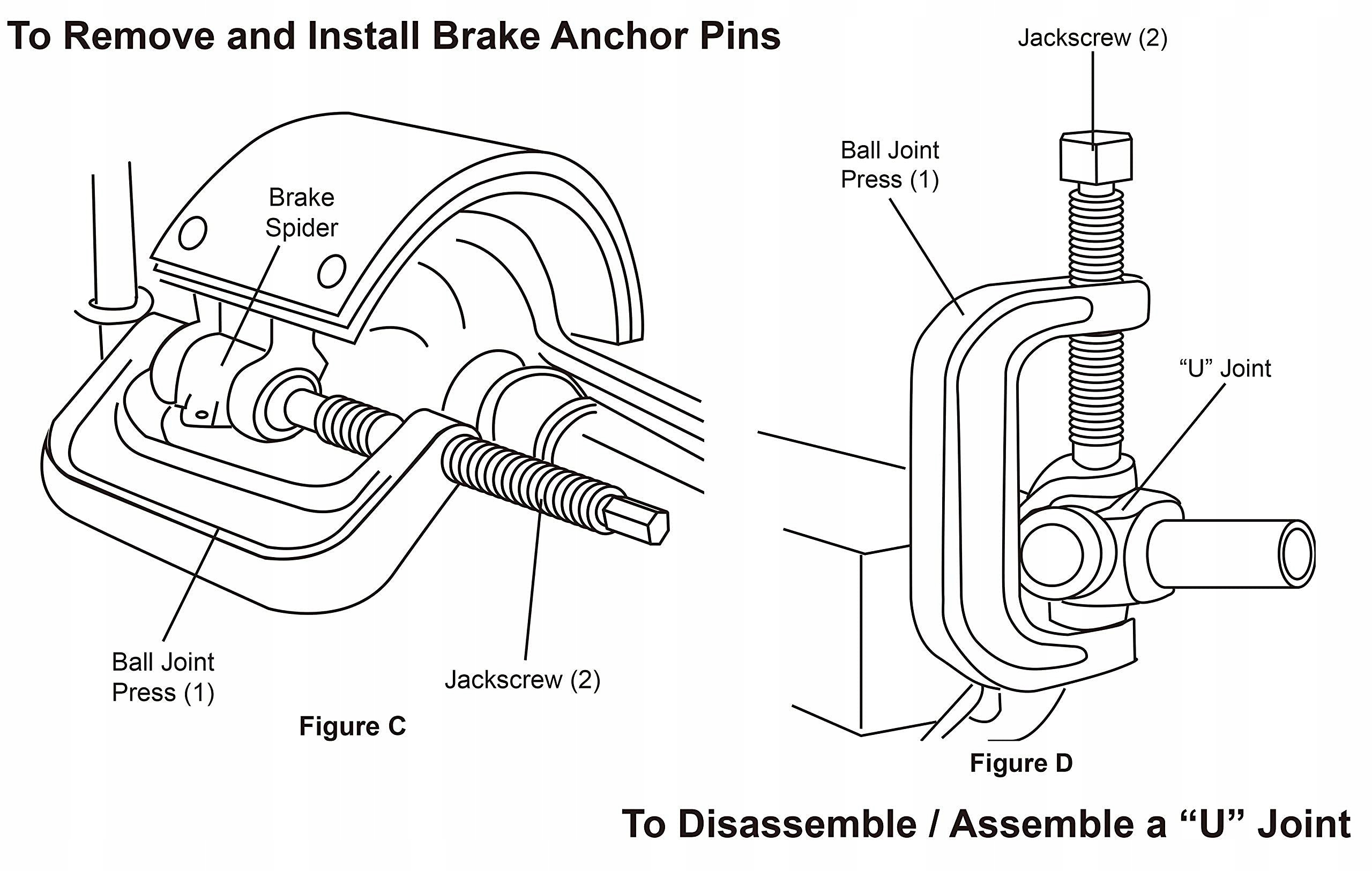 Идеально подходит для обслуживания/ремонта шаровых опор полного привода. 1 пресс для рамки "C", 1 винт для рамки "C"