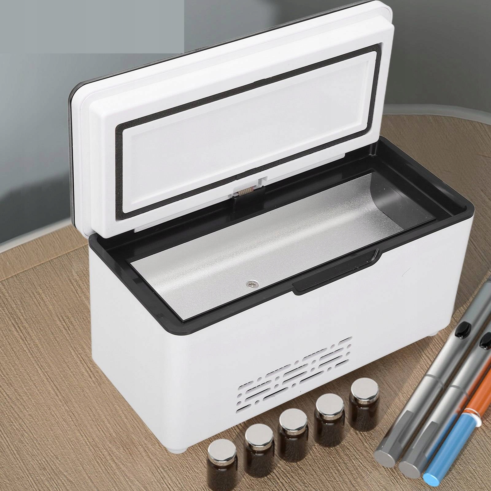 Питание: адаптер, соединяющий USB -кабель, зарядное устройство, раздела USB -автомобиль, литийная батарея и т. Д. то есть полупроводники для получения охлаждения, и генерирует низкотемпературную проводимость в коробку для лекарств через ток на специальных полупроводниках и пугает тепло из тепла через вентилятор тепла.