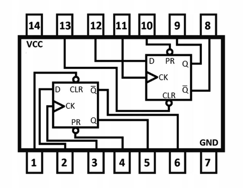 Інтегральна схема 74LS74 : 2x D тригер, DIP14