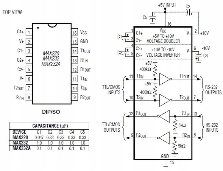 Інтегральна схема MAX232: інтерфейс RS232, DIP16