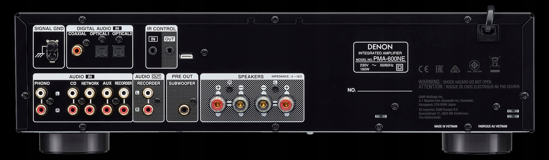 Инженеры Denon тщательно спроектировали усилительную часть PMA-600NE, чтобы обеспечить частотную характеристику до 100 кГц. Схема регулировки громкости подавляет шум в усилителе, обеспечивая высокое разрешение звука. Интегрированный усилитель PMA-600NE поддерживает широкий спектр динамических аудиоисточников высокого разрешения с полным контролем тембра и мощности.