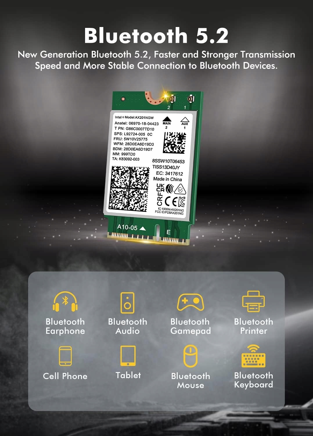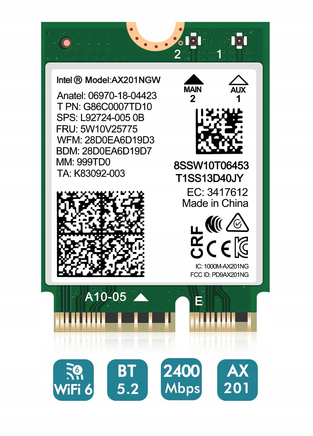 intel ax201 - wifi 6, bluetooth 5.2, cnvio2. Карта после возвращения, идеальное визуальное состояние, непроверенное.