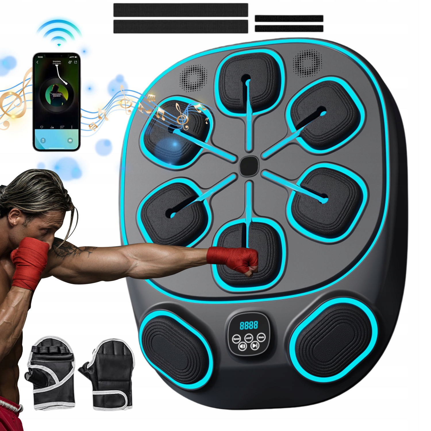 - 8 мишеней (6 основных щитков + 2 боковых крючка) для прямых ударов, апперкотов и комбинаций. Тренируйтесь как профессионал с динамичными ритмическими рисунками.