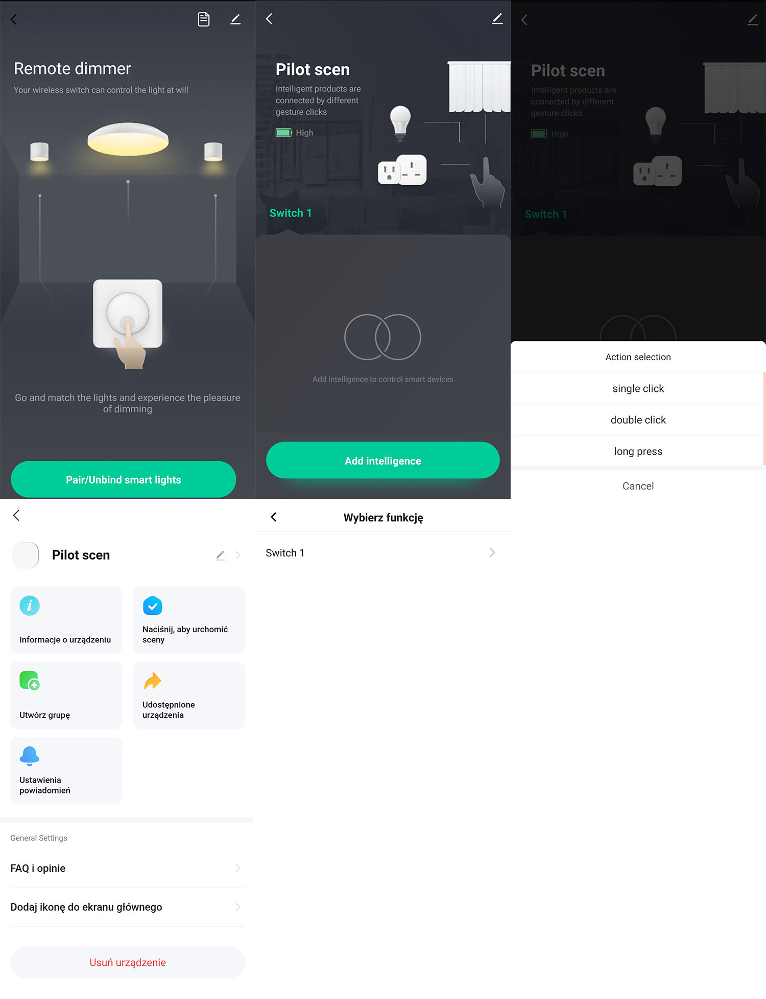 ✅ Три назначенных действиях: Возможность назначить три разных функции на одну кнопку: одна нажатие, двойное нажатие или длинное удержание