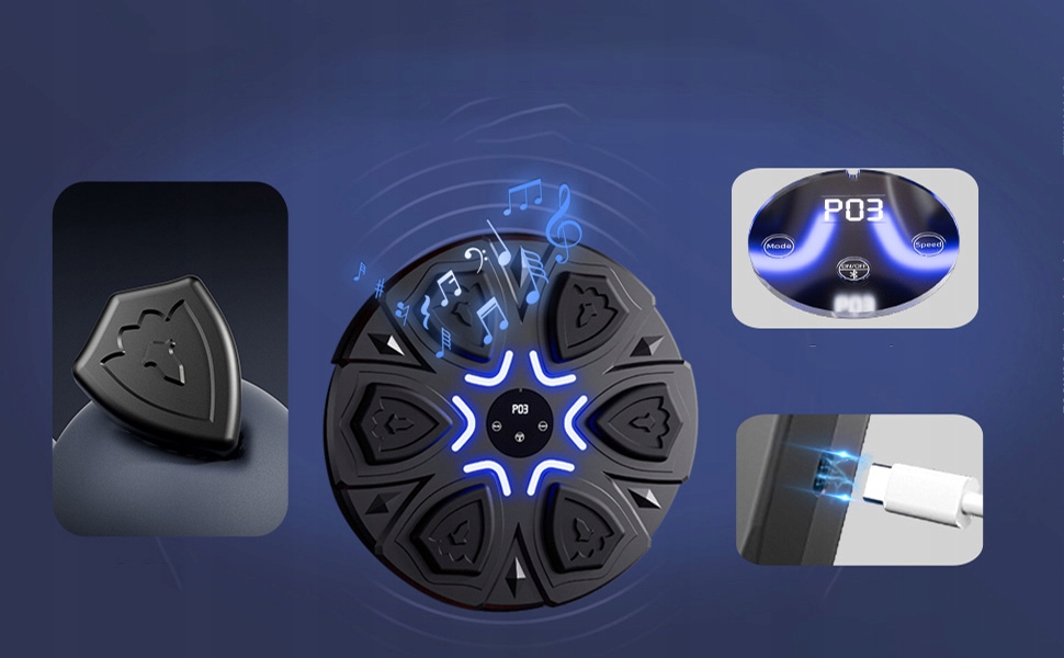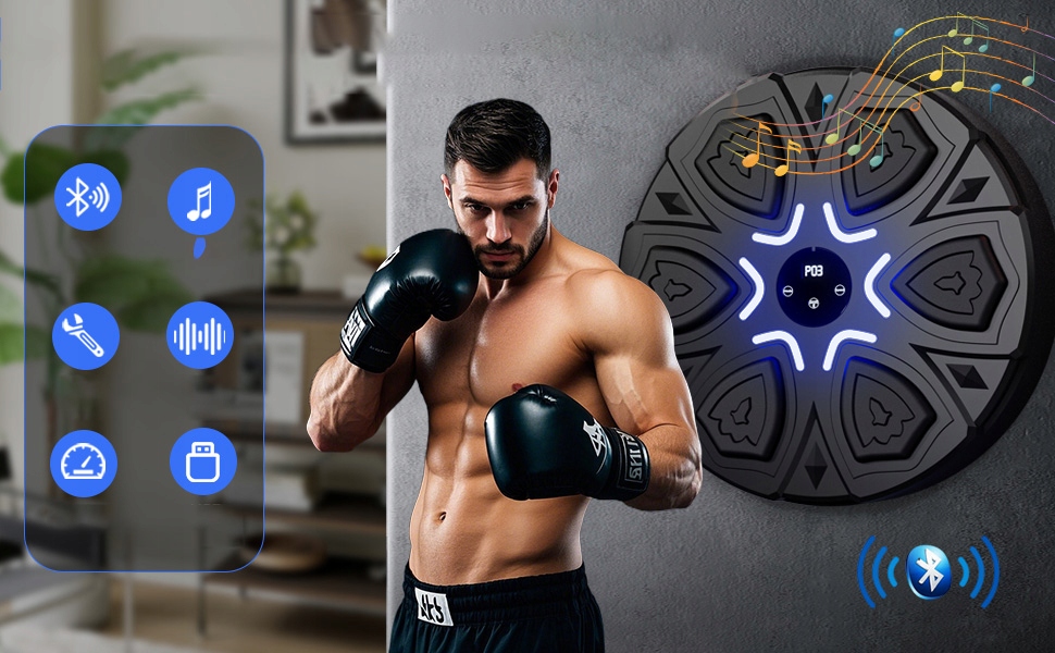 🎵- Музыка синхронизируется со светодиодным освещением, адаптируясь к ритму ваших ударов, что делает все тренировки до удовольствия.