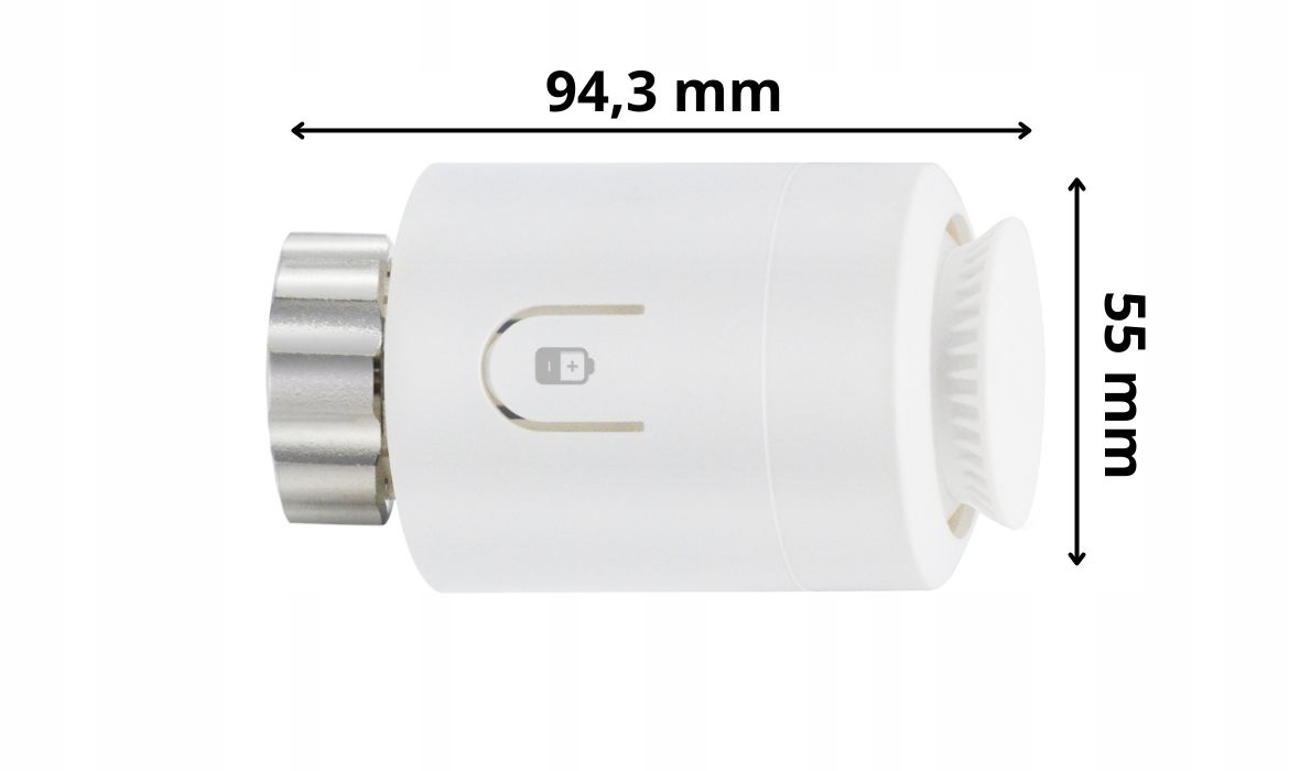 Головка имеет размеры 94,3 x 55 мм, что позволяет легко устанавливать ее на радиаторные клапаны.