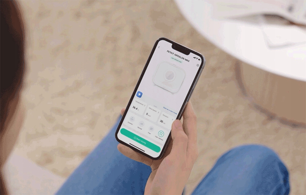 С помощью приложения Petkit пользователь получает множество бесценных функций, которые облегчат процесс сушки питомца, такие как способность создавать персонализированный режим сушки, выбирая из шести скоростей ветряной муки, выборы температуры из диапазона 36-40 ° C или способности отслеживать процесс высыхания.