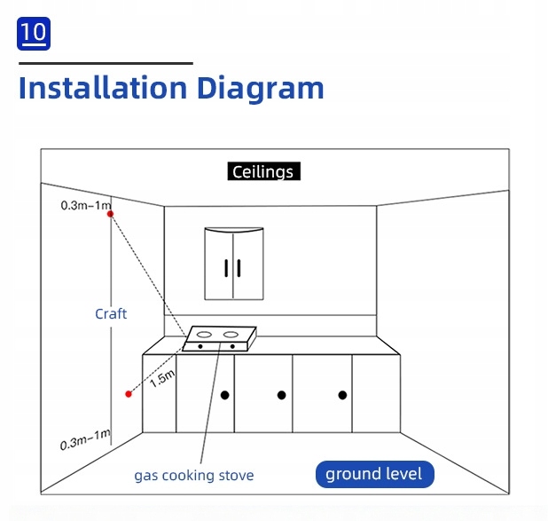- Настенное крепление (0,3–1 м над полом) для более тяжелых газов (., сжиженного нефтяного газа).